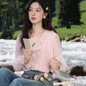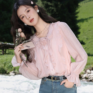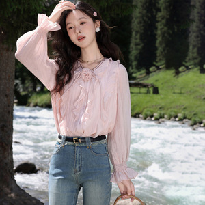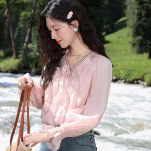 フランスの気質の優しいシャツの女性2025年秋の新型の大衆のデザイン感はやせているシャツを現します。