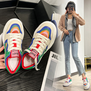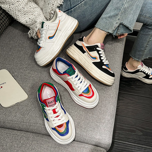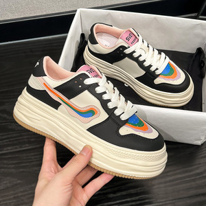 ヨーロッパ駅の白い靴2025春の爆発的な人気のあるアヒルの色のカジュアルな靴の厚い底の中で高くなっている女性靴