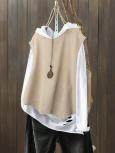 クロスボーダー秋冬純色丸首ノースリーブベストシンプルカジュアル風大きいサイズニット上着