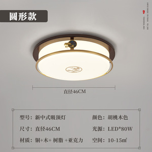 胡桃木LED天井灯新中国式銅と実木客間主寝室書斎レストラン部屋工場直売