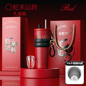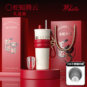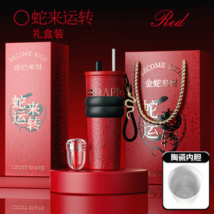 蛇年陶磁器内胆ストロー保温カップ316大容量コーヒー氷覇カップ高颜値ギフトボックス実用