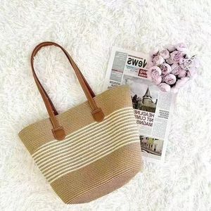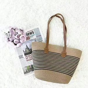 ソース卸売外国貿易人気のわらバッグストライプ大容量トートバッグ夏のショルダービーチ模造籐メッシュバッグ