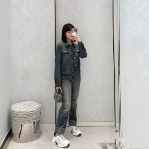 2025年新作南油D家小蜜蜂刺繍シングルブレストスタンドカラーデニムジャケットとストレートパンツのセット、英国風