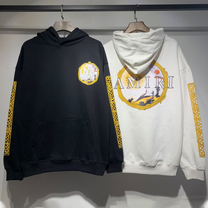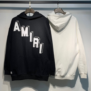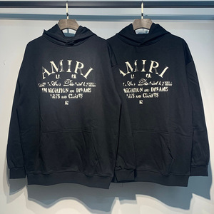 24AMIRIガーディアンコレクション国境を越えた美潮アルファベットプリント360グラム毛輪男性ゆるいカジュアルフード付きガーディアン