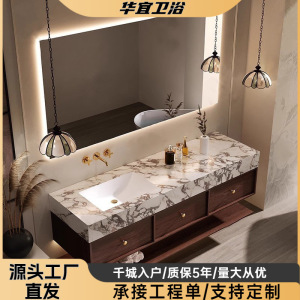 軽量高級スレートセラミックシームレス洗面台無垢材バスルームキャビネット組み合わせバスルームシンク手洗い洗面台