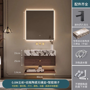 80CM スレートセラミックシームレス洗面器 + スマートミラーキャビネット