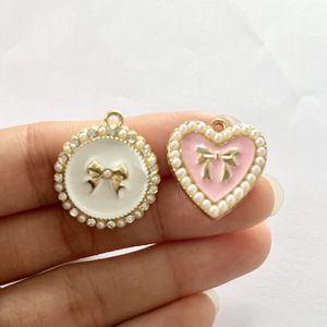 韓国の髪飾りDIY合金部品真珠蝶結び愛の丸いペンダントDIY滴油合金ペンダント材料