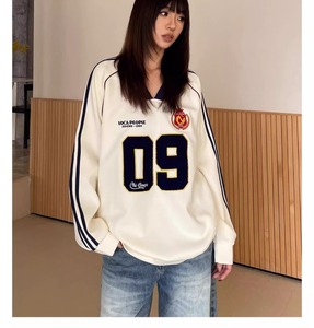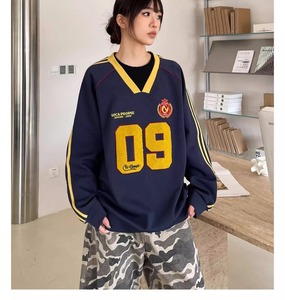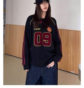 外国貿易のアメリカ式の重いポンドのヒップホップの女性の2025春の新型のvネックのユニフォームのカップルのゆったりしているコートの男性の上着