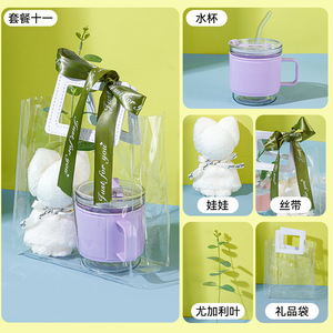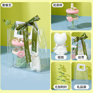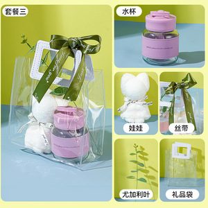 透明カップお土産ロゴ高颜値高級感ギフトカップ団建ギフトセットガラスストローカップ