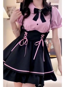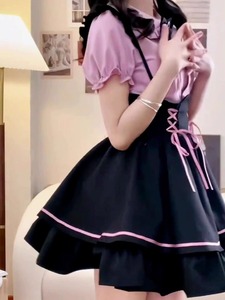 日本系の甘いかわいいロリータのワンピースの女の子のLolitaの王女のスカートのシャツの背もたれのスカートのスーツの2つのセット