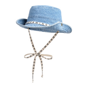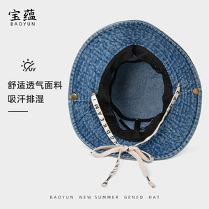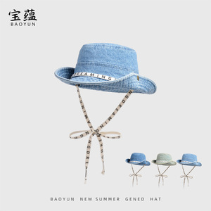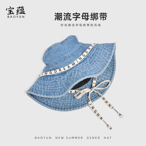 春夏の韓国版漁師帽女性2025西部のデニムのアルファベットのつばの大きい鉢の帽子の日よけの日焼け止めの登山帽
