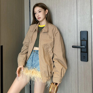 天井の毒家の元の標識のサイズミュールの家のINSの風のネットの赤い金は色の格子の紋様のファスナーのジャケットの男女にぶつかります。