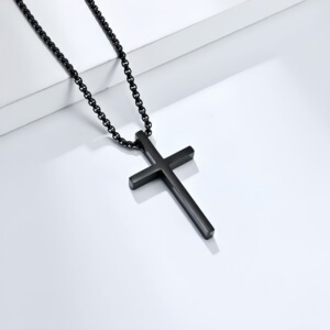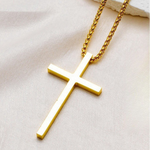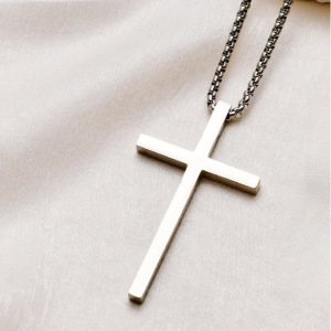 国境を越えて人気のあるキューバチタン鋼光沢クロス男性ネックレスヒップホップ風男女共通真珠チェーン