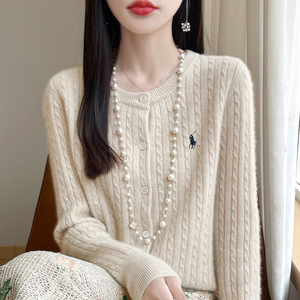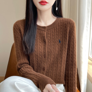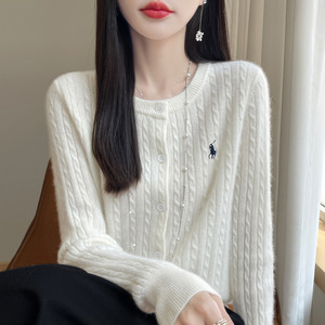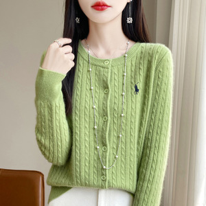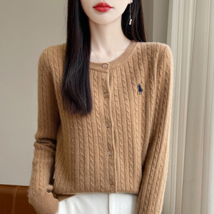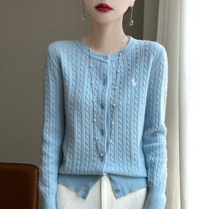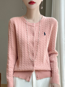 【メーカー直供】春と秋の新型丸首純色刺繍ニットカーディガンのコートがゆったりしています。
