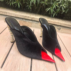 欧米のファッションの先の女性のスリッパのビロードのデザインのヒールのハイヒールの夏のビロードのクロスボーダーの女性の靴
