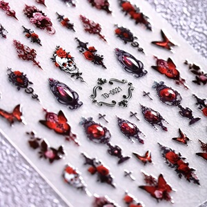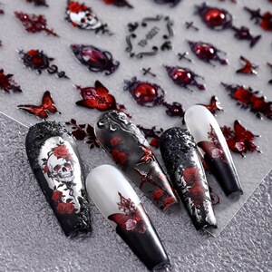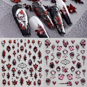 国境を越えて2025年にゴシック風ソフトゴム浮き彫り5D薔薇デカールネイルシールDIY薔薇爪貼り