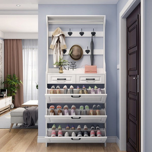 雲沢下駄箱家庭用玄関白色ハンガー付きダンプシューズ戸棚引き出し付き大容量省スペース収納