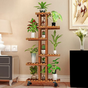 ベランダの花の棚の多層の物置棚の家庭用室内の多肉の床の植木鉢の棚の実木の客間の装飾の省の空間