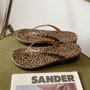 2025夏の新型ヒョウ柄の女性の靴の坂とビーチの海辺の滑り止めスリッパのファッション的なサンダル