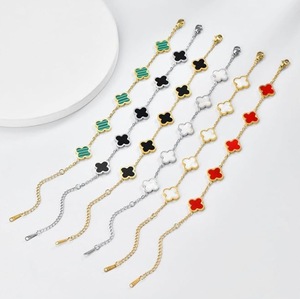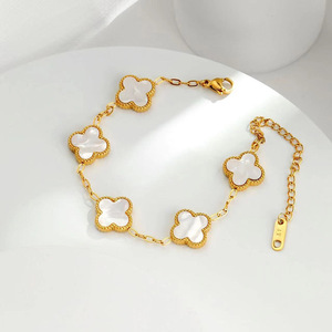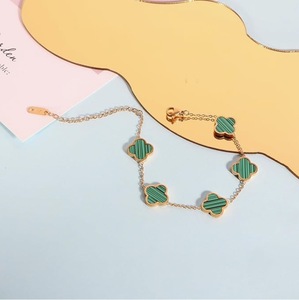 Amazon の人気のステンレス鋼四つ葉のクローバー ブレスレット、色あせしない女性用チタン鋼ハイエンド ins スタイル ジュエリー卸売