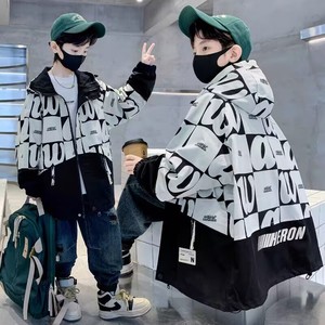 男の子の春秋服のコート2025の新型の中で子供の男の子のカジュアルな上着の春の格好いい帽子の屋外のウインドブレーカー