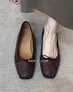 牛革 ~ 本革の手作り靴の復古風の浅い口の平底の靴の女性の百合の通勤の蝶結びのバレエの靴