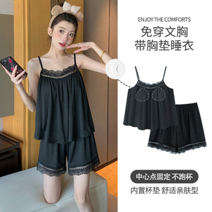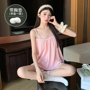 しわの布のしわの綿の胸のパッドのストラップのショートパンツのスーツの夏のパジャマの女性の部屋の服のその他の徳の絨毛の漫画