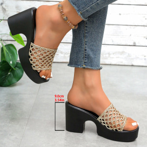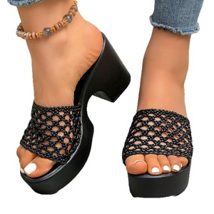 夏の新型の厚い底の透かし彫りのハイヒールのサンダル2025女性の大きいサイズの越境の露指の気質の1字のスリッパ43