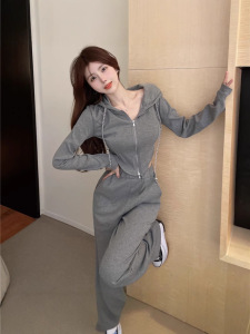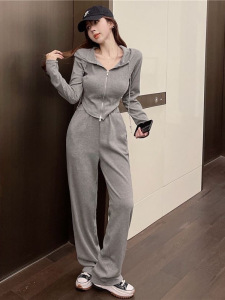 ファッションスーツ女性2025年春秋新型ゆるいレジャースポーツ広脚ズボン高腰修身スウェット2点セット