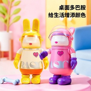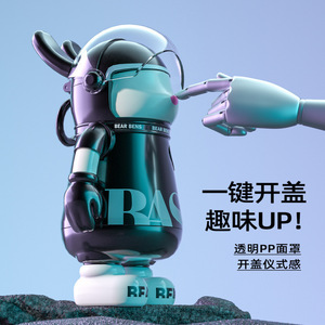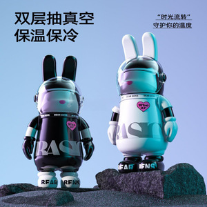 保温カップ高颜値かわいい大容量ストローカップ男女学生月兎潮游保冷カップ黒無