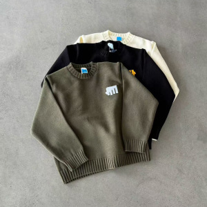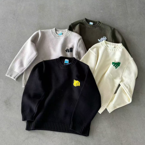 美式复古潮流经典五道杠套头毛衣男女春秋款圆领时尚针织打底衫潮