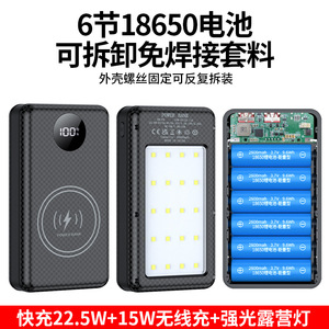 無溶接6節18650電池充電宝移動快充電源DIY充電宝セットケースにキャンプ灯付き