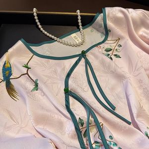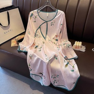 古風七分袖シミュレーション糸寝スカート女性夏パジャマ新中国式ワンピース中国風ホームウェア高級感