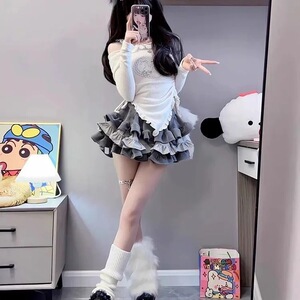 2026年初秋ガールズファッション クロスベージュトップス 超豪華ケーキ風パフスカート スイートスパイシーセット