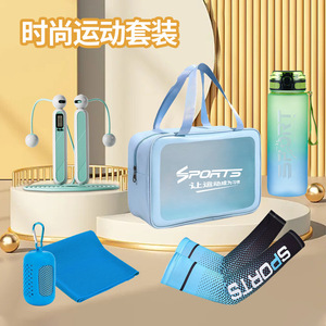 新しいスポーツスーツ(大型収納バッグ+スポーツウォーターカップ+電子二重用途カウンティング縄跳び+スポーツアイススリーブ+カスタマイズされた速乾タオル)