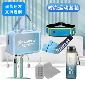 新しいスポーツスーツ(大型収納バッグ+スポーツウォーターカップ+スポーツアイススリーブ+スポーツウエストバッグ+小型ファン+シリコンカバークールタオル+電子兼用カウンティング縄跳び)