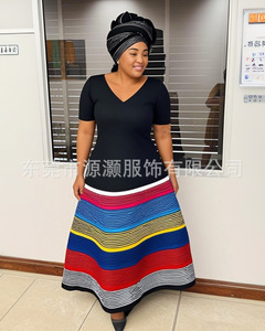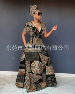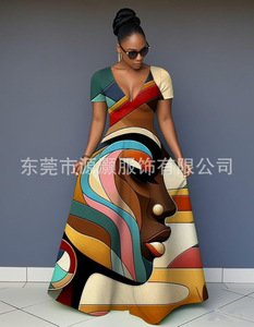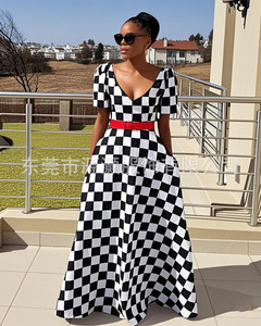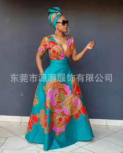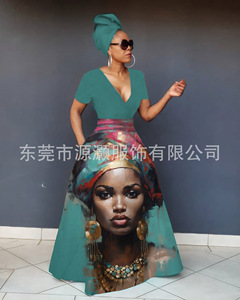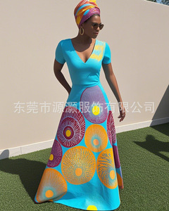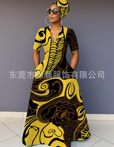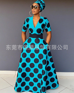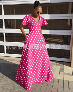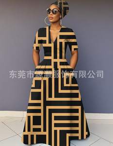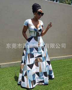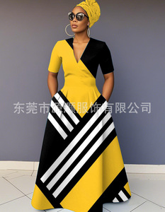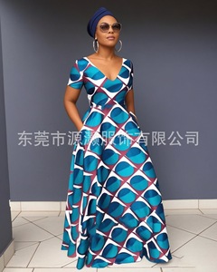 E438 レディース Vネック半袖ロングスカート 夏レギュラースタイル