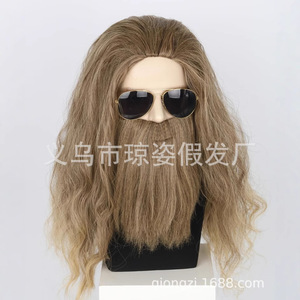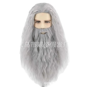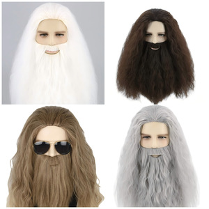 ハロウィーンの祝日のかつら男コスプレサンタクロースの長いカールとひげの長いひげのセットの全頭カバー