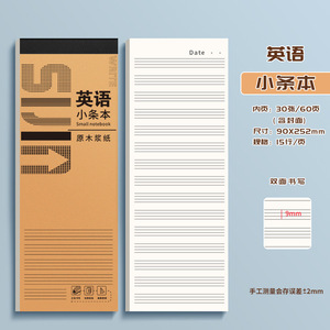 厚みのある牛革の小さなストリップノート、長いストリップノート、ポータブルメモ帳、ノートブック、学生の中国語と英語の単語帳