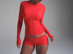一部在庫あり SKIM*S バレンタインデー新色 FTS EVERYBODY 日焼け止めトップス スリム長袖ラウンドネックT
