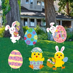 クロスボーダー pp プラスチックイースタービッグカードバニーエッグスタッドロゴ付き中庭ガーデン屋外装飾ドア