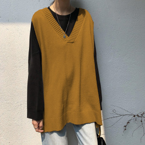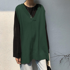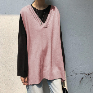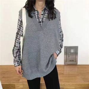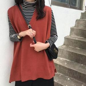 2025早春の韓国版vネックのオープンフォークニットのベスト女性のゆったりとした純色が見えます。