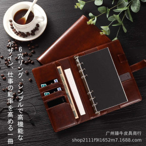 アマゾンの爆発的な牛革バインダーはビジネスのレトロな汎用メモ帳を挟んでノートの手帳を収納する