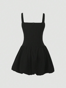 アマゾン独立駅2025夏の新型袖なしの細い肩ひもの方襟の純色のミニパーティーのワンピース
