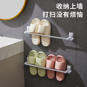 浴室用スリッパラック、穴あけ不要の壁掛け式シューズラック、タオルバー、トイレのドア後ろにスリッパを掛けるための収納ラック