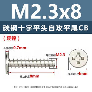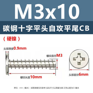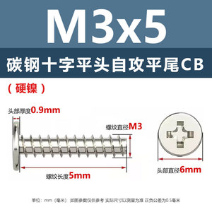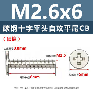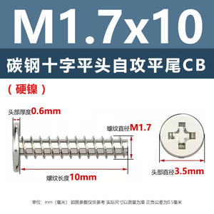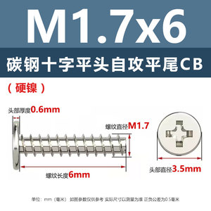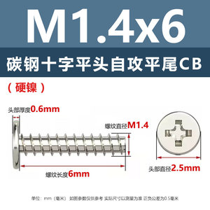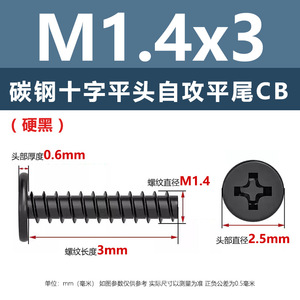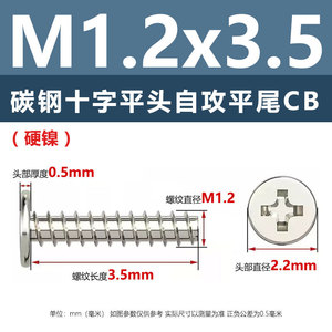硬質ニッケルメッキCB十字平頭平尾タッピングねじM1.2M3黒色薄辺大平頭ねじ釘