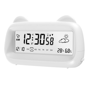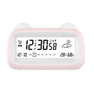 クリエイティブ猫目覚まし時計学生専用起こしかわいいタイムカードカレンダー透明多機能スマート電子目覚まし時計