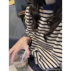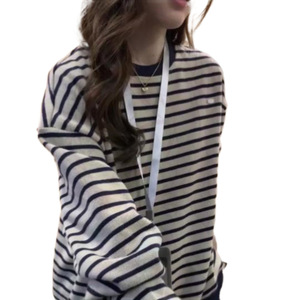 アメリカのoversizeストライプの丸首の衛衣の女性2025春秋の新型の爆発的な爆発のゆったりしている独特な超美しい上着