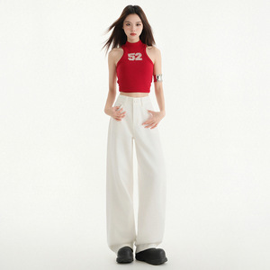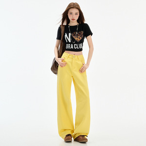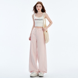 ドーパミン桜花粉ゆるいジーンズ女性夏の新しいアメリカのゆるい垂直感のあるストレートなズボン