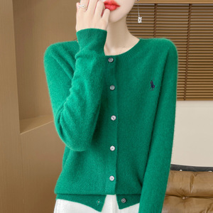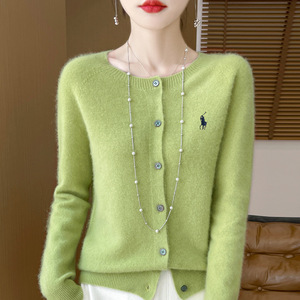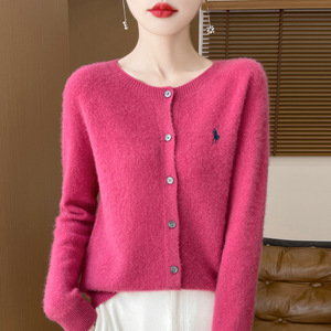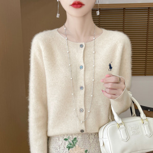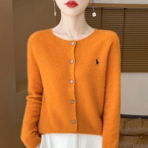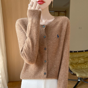 【メーカー直供】春秋新作丸首純色刺繍レディースセーターゆるい薄いニットカーディガン
